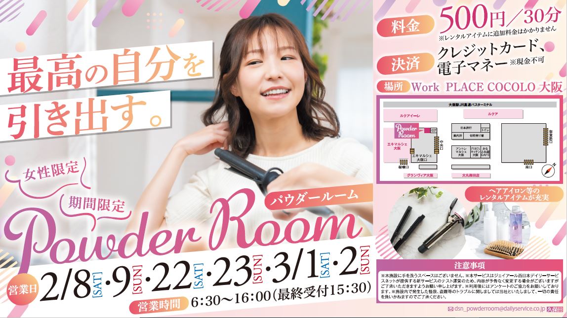 We will conduct a test operation of the powder room for a limited time at JR Osaka Station premises!