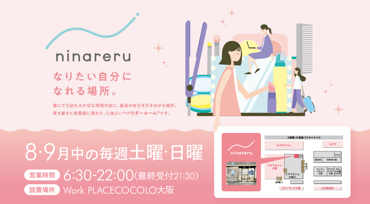 On the premises of JR Osaka Station, we will conduct a new powder room service "ninareru" for a limited time!