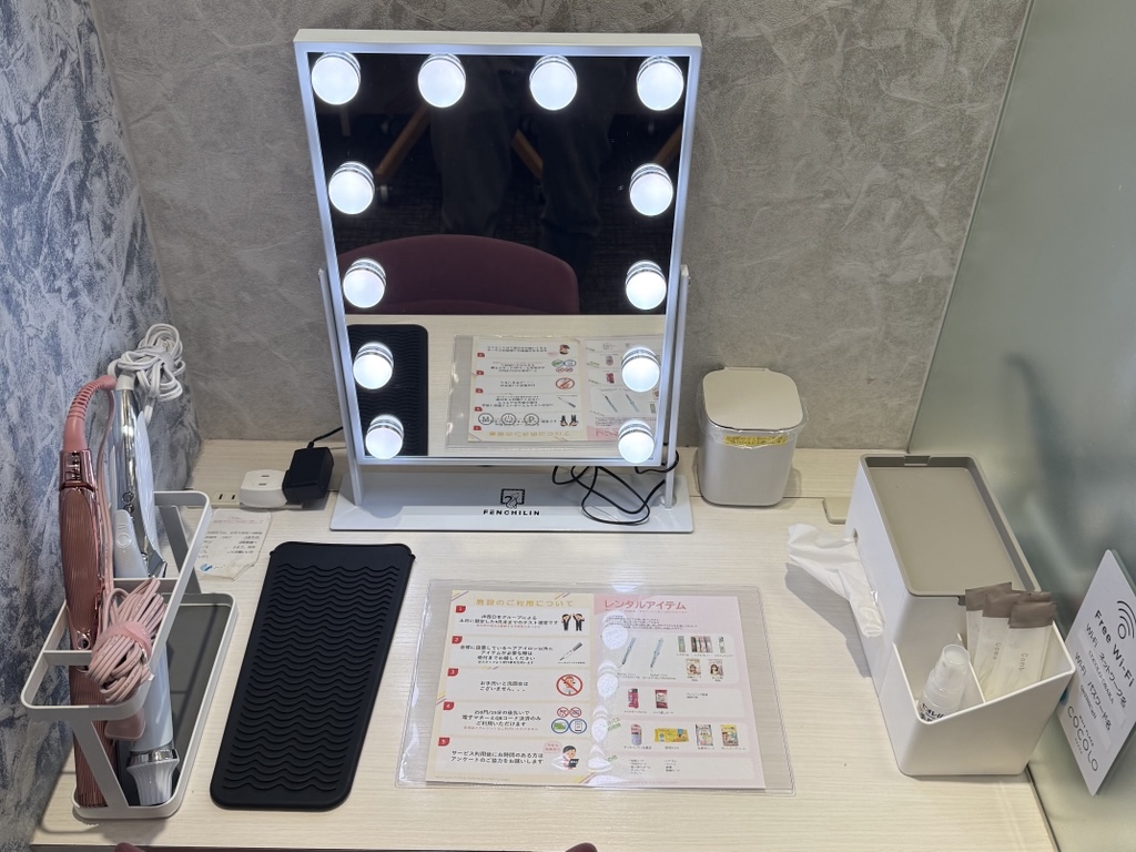 ReFa's hair iron, hair oil, hair spray, comb, makeup sheet, sweat wipe sheet, morning mask, all-in-one cosmetics, changing room, etc. (Please see the official SNS for details)
